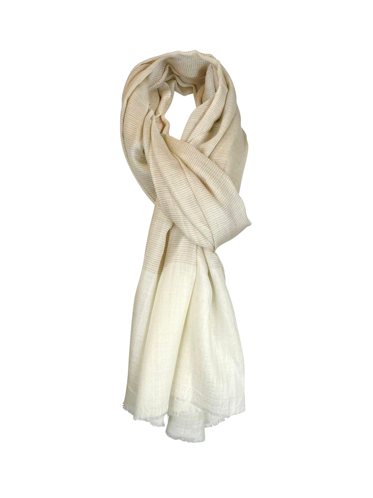 Cashmere Scarf - Soft Beige With Stripes
