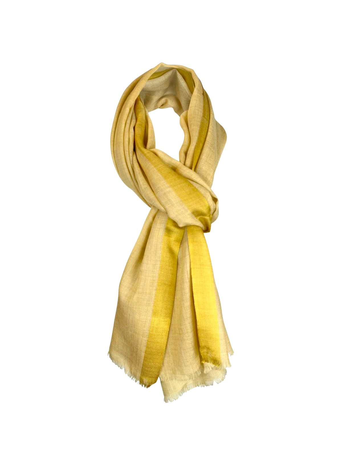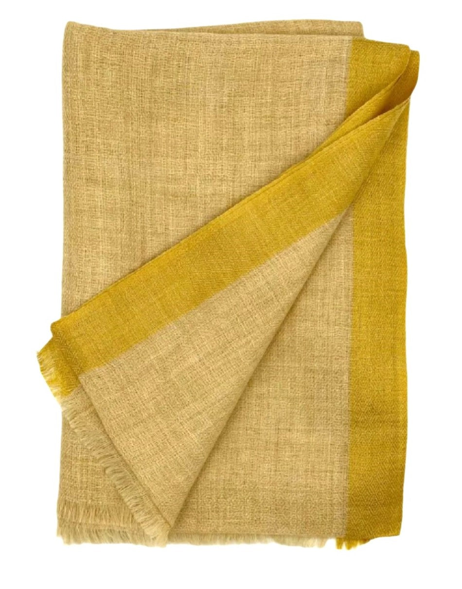 Cashmere Scarf - Yellow with Gold Border