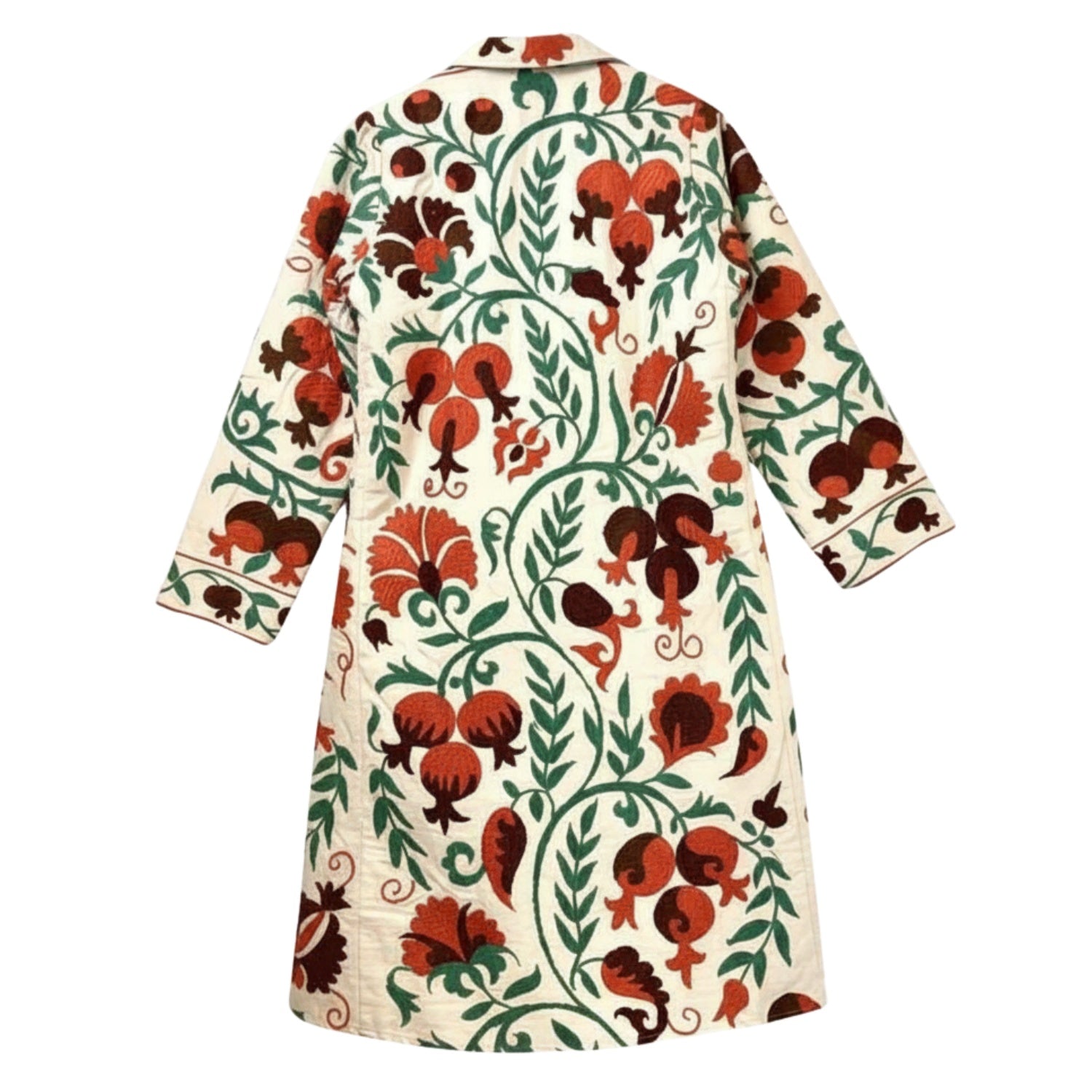 - Authentic Suzani Technique: Each Gul coat is a testament to heritage, meticulously hand-embroidered by skilled artisans from Uzbekistan using the traditional Suzani technique indigenous to the region.