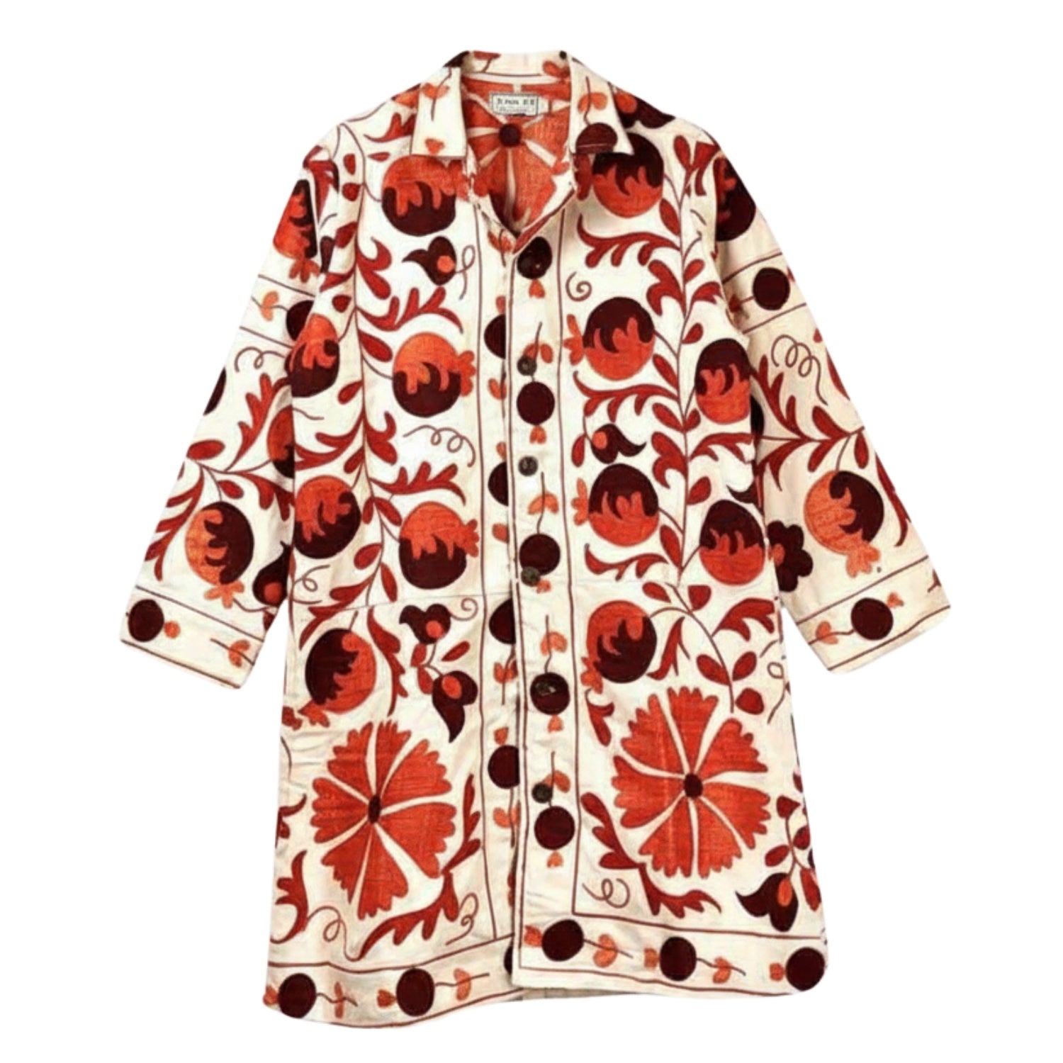 - Authentic Suzani Technique: Each Gul coat is a testament to heritage, meticulously hand-embroidered by skilled artisans from Uzbekistan using the traditional Suzani technique indigenous to the region.