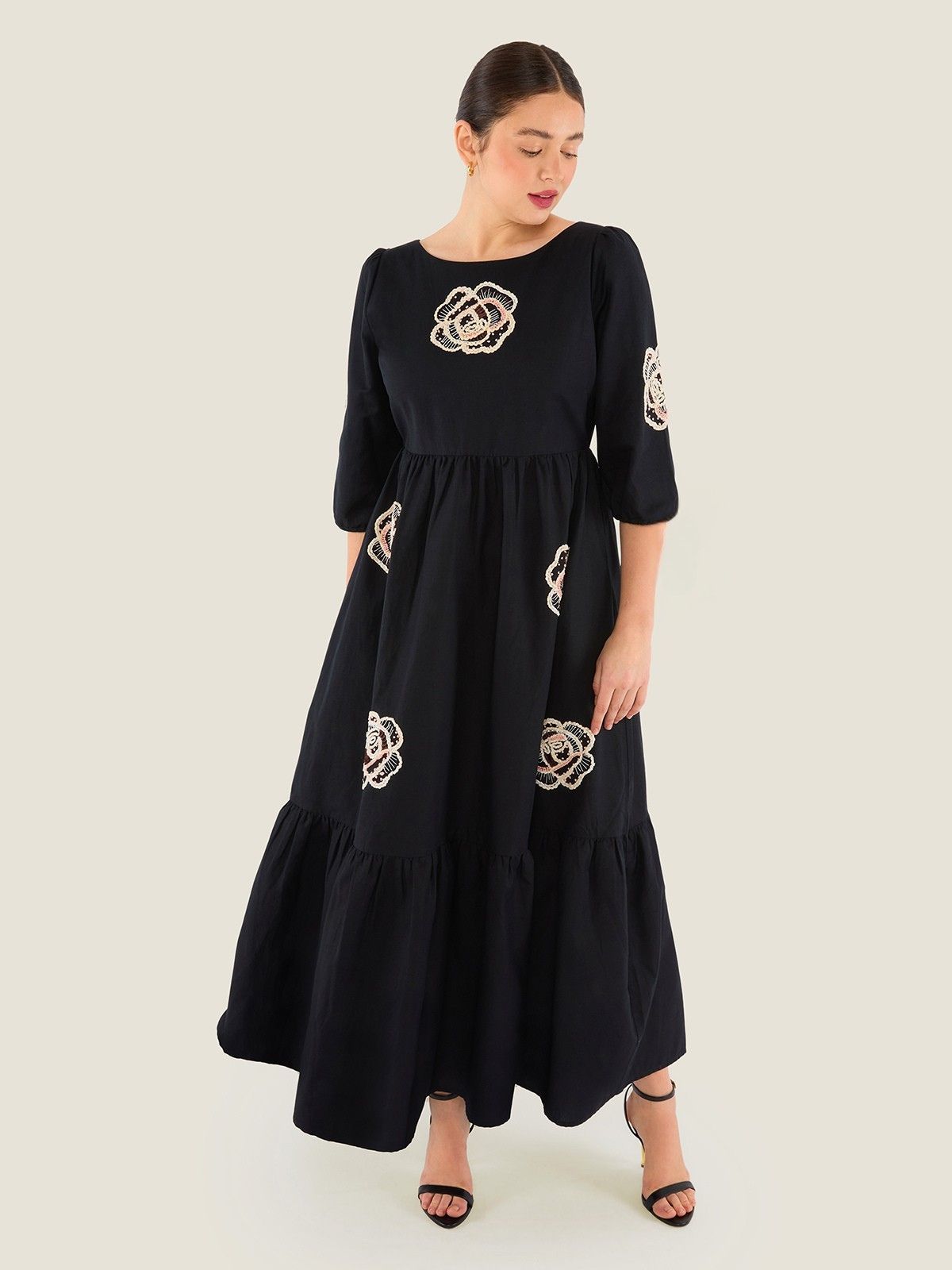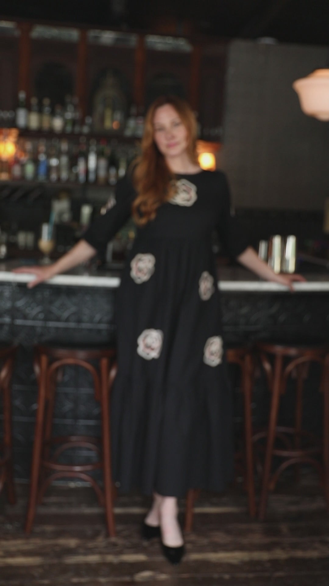 Step out in style and elegance with the Harper Dress. Made with luxurious linen fabric, this dress features a unique hand-embroidered rose motifs that showcases expert craftsmanship. With long sleeves and a versatile neckline, you'll feel confident and beautiful in the Harper Dress for any occasion.