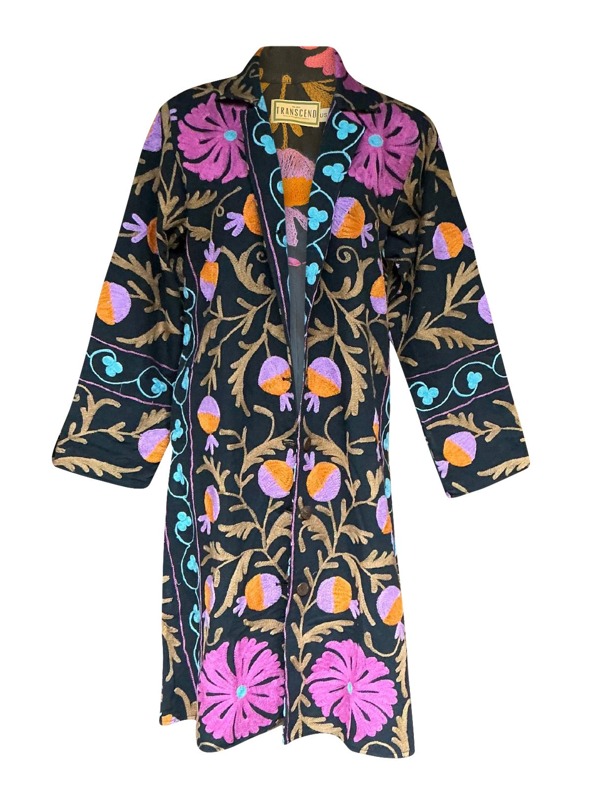 Experience the artistry of Malika coats, meticulously crafted with stunning Suzani embroidery in beautiful color palettes from Uzbekistan. Every coat is thoughtfully lined and designed with Transcend's signature deep pockets.
