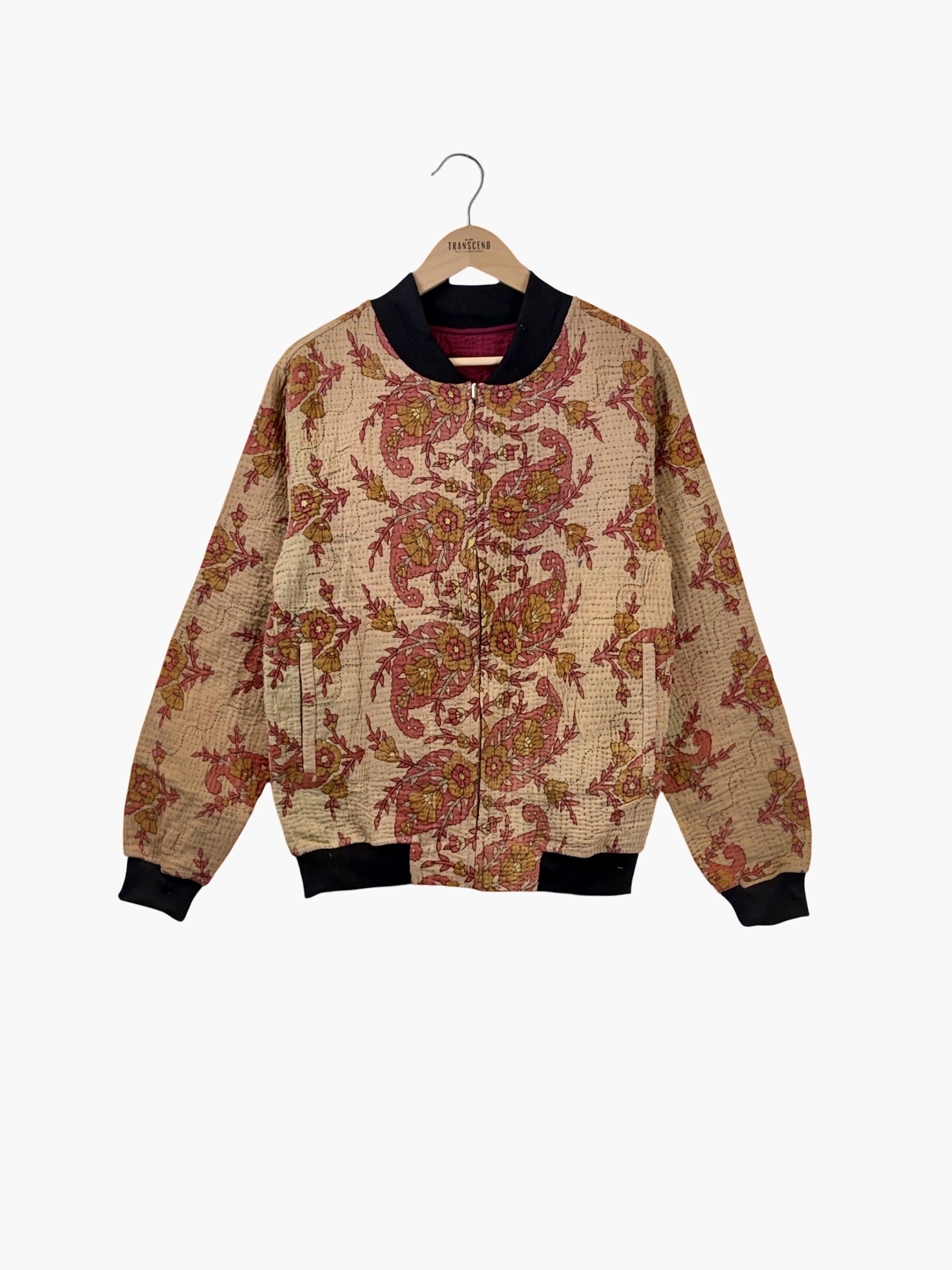 A one-of-a-kind MEN'S bomber jacket crafted from vintage kantha textiles. Lightweight yet full of character, this piece is a cozy, statement layer for everyday wear.