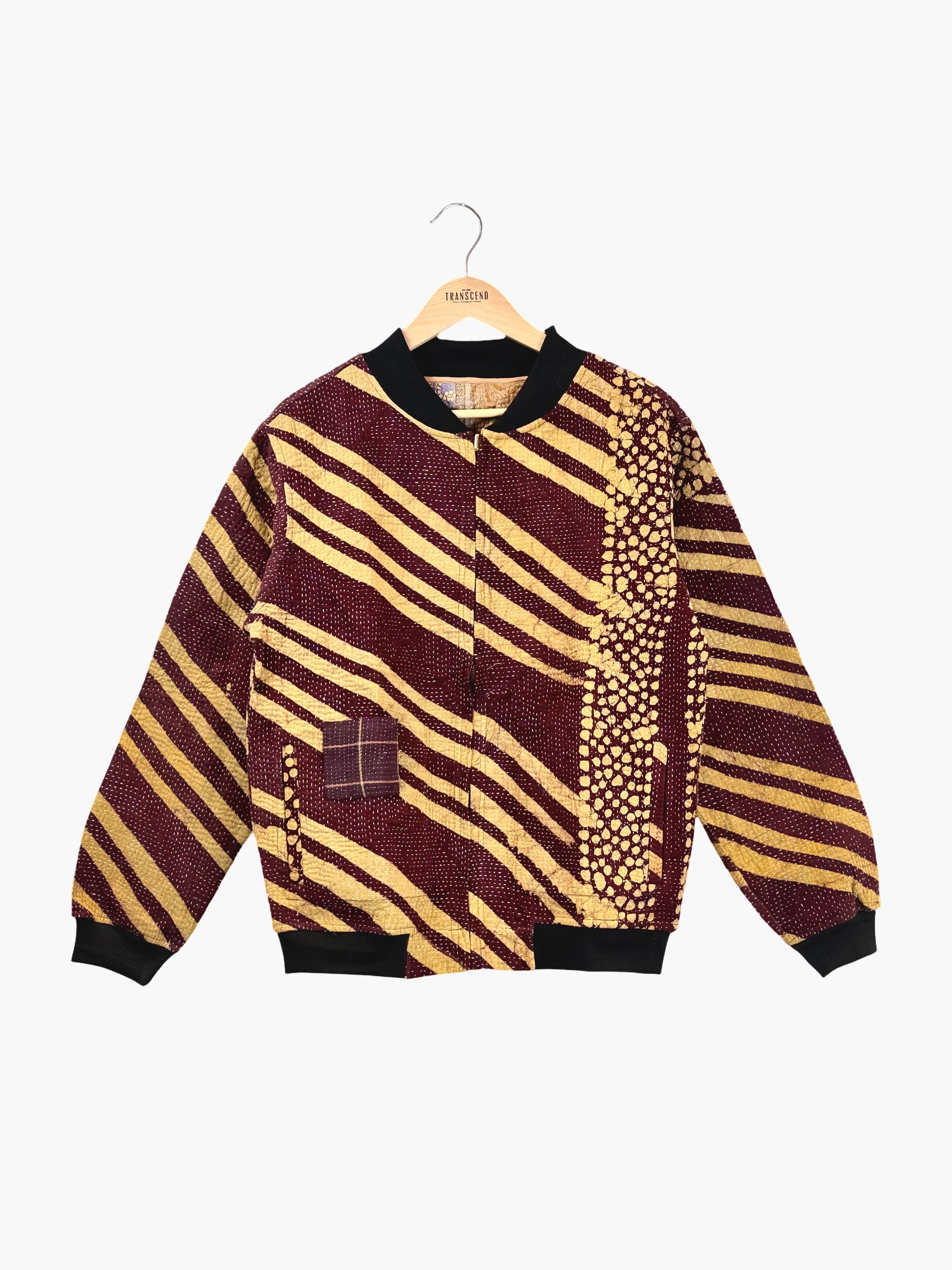 A one-of-a-kind MEN'S bomber jacket crafted from vintage kantha textiles. Lightweight yet full of character, this piece is a cozy, statement layer for everyday wear.