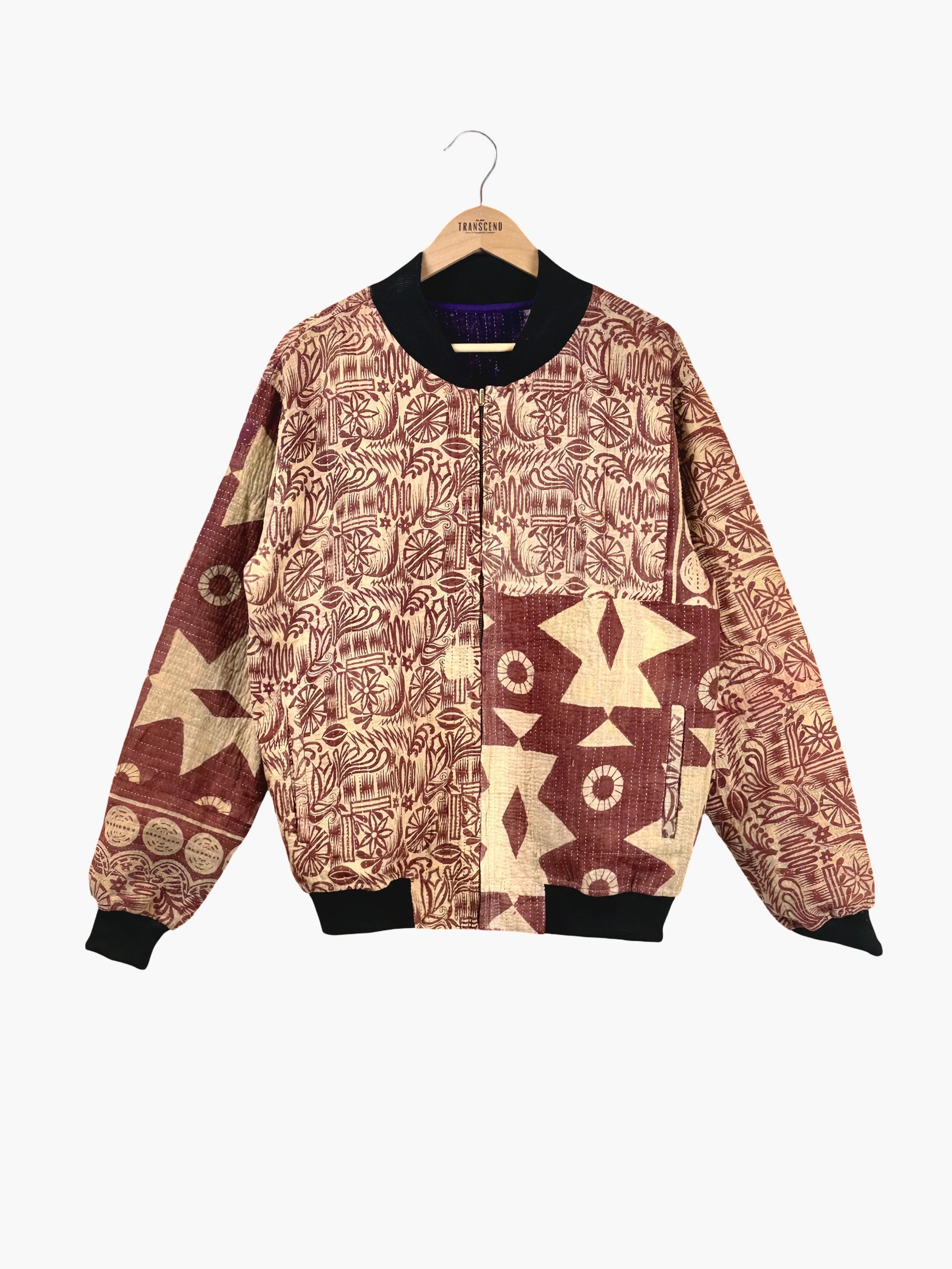A one-of-a-kind MEN'S bomber jacket crafted from vintage kantha textiles. Lightweight yet full of character, this piece is a cozy, statement layer for everyday wear.