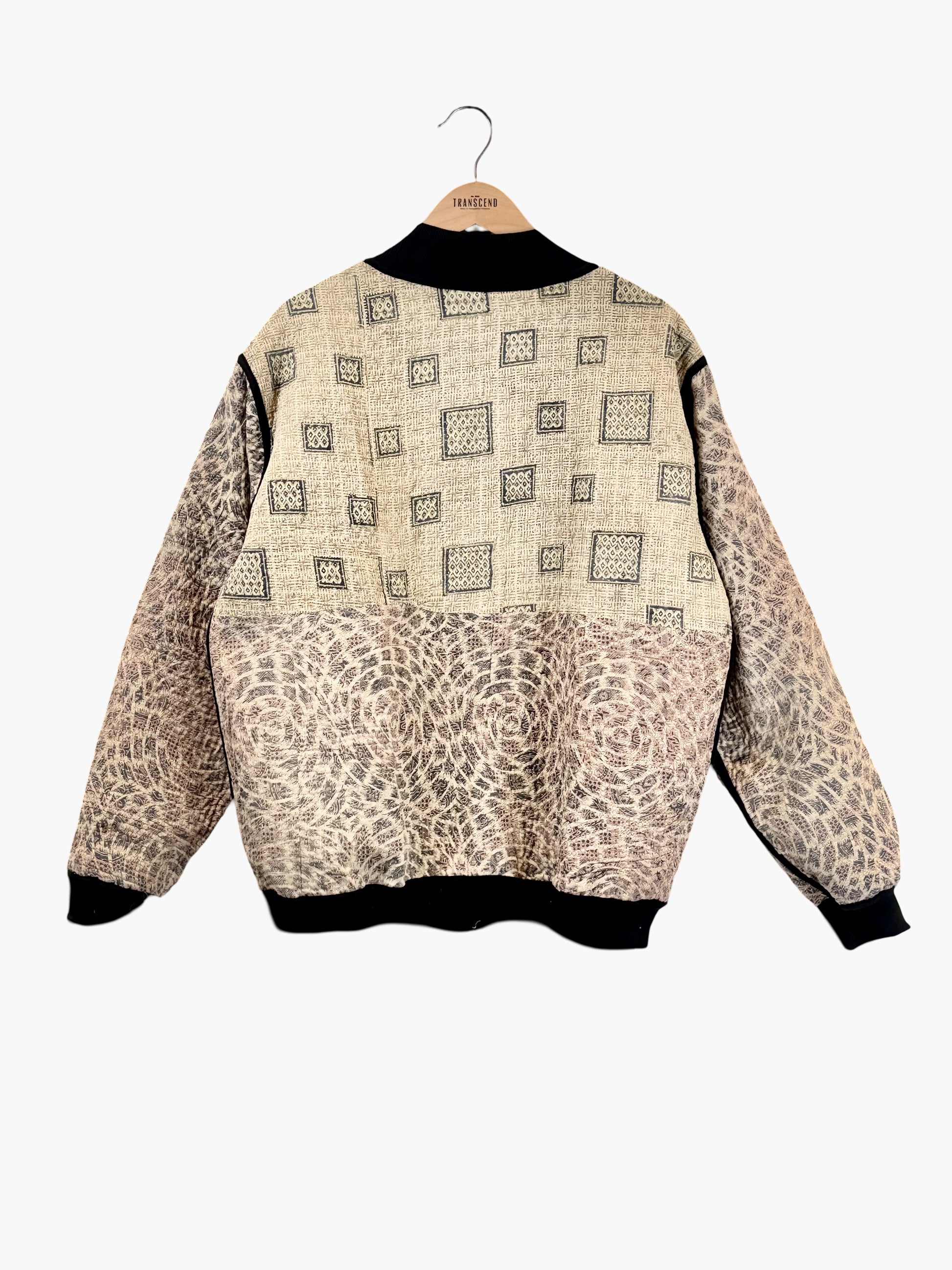 A one-of-a-kind MEN'S bomber jacket crafted from vintage kantha textiles. Lightweight yet full of character, this piece is a cozy, statement layer for everyday wear.