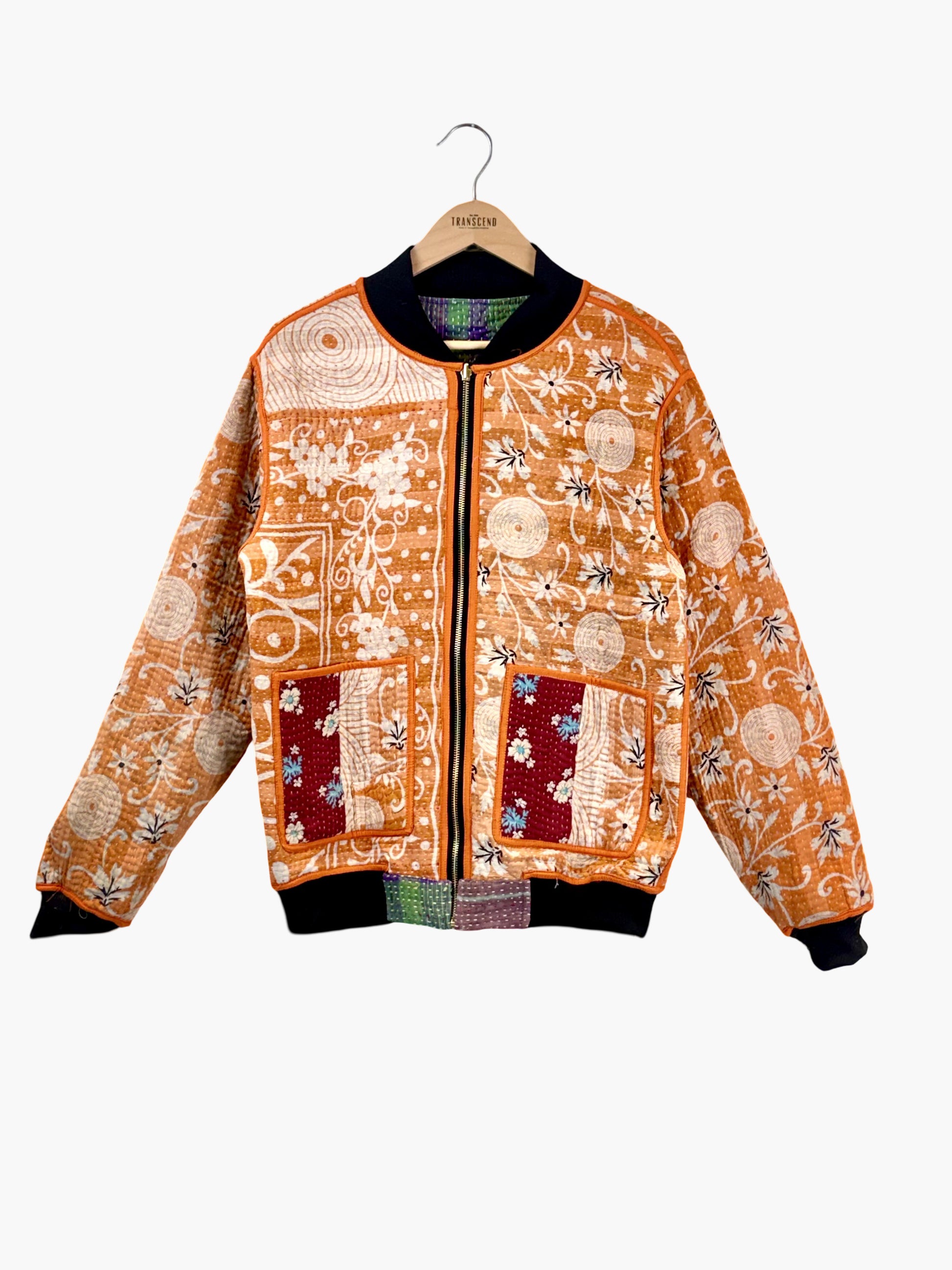 A one-of-a-kind MEN'S bomber jacket crafted from vintage kantha textiles. Lightweight yet full of character, this piece is a cozy, statement layer for everyday wear.