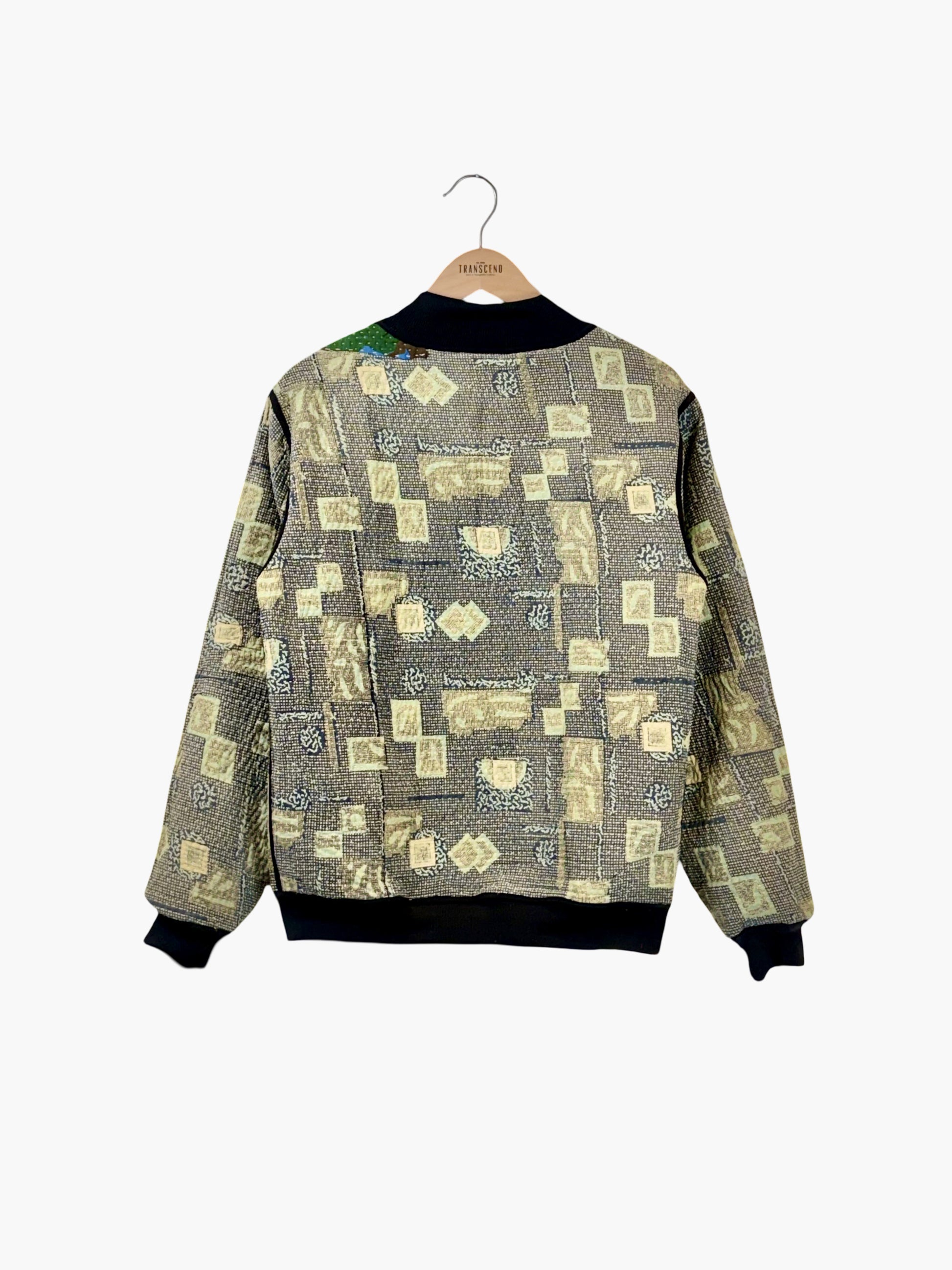 A one-of-a-kind MEN'S bomber jacket crafted from vintage kantha textiles. Lightweight yet full of character, this piece is a cozy, statement layer for everyday wear.