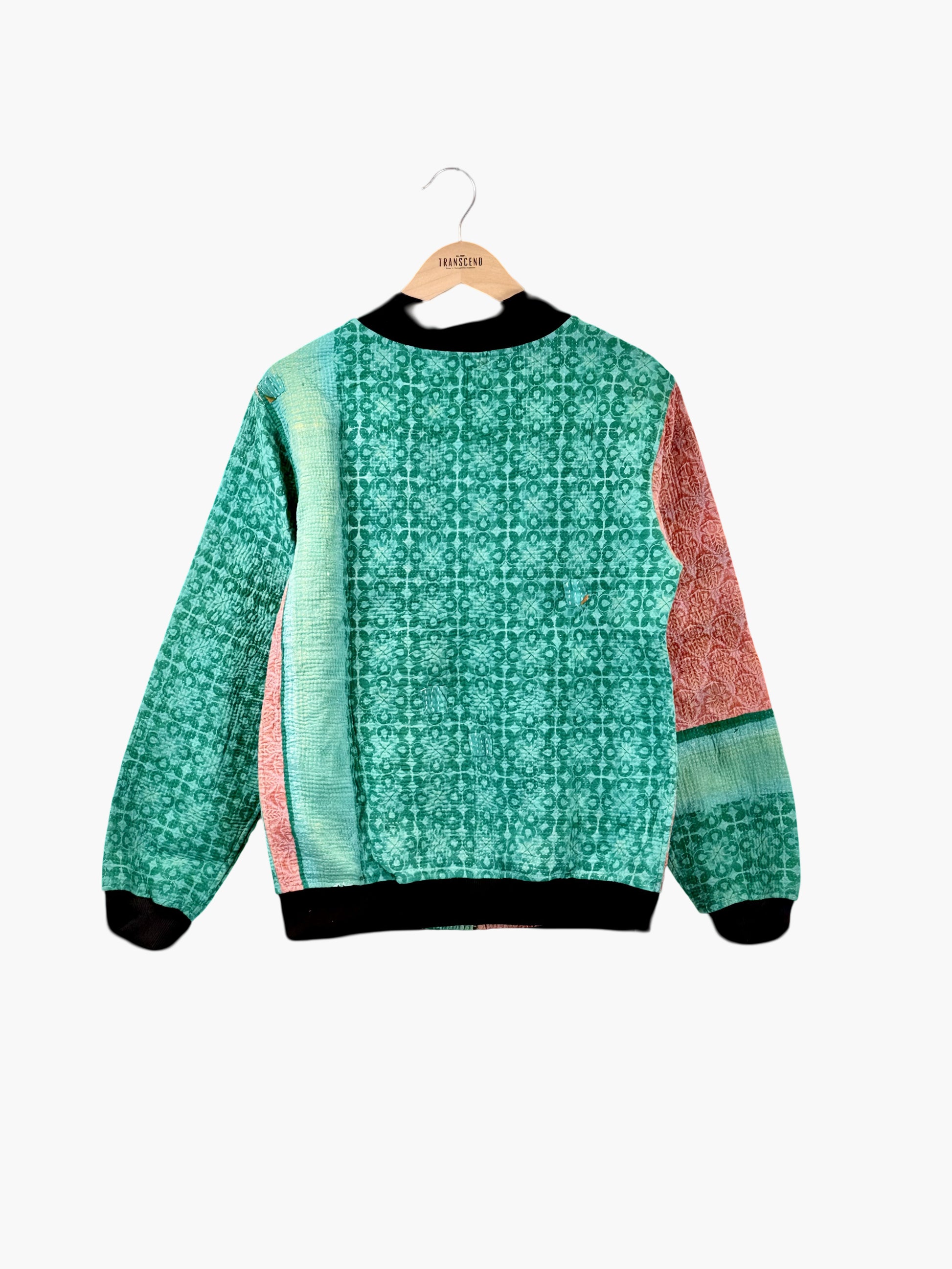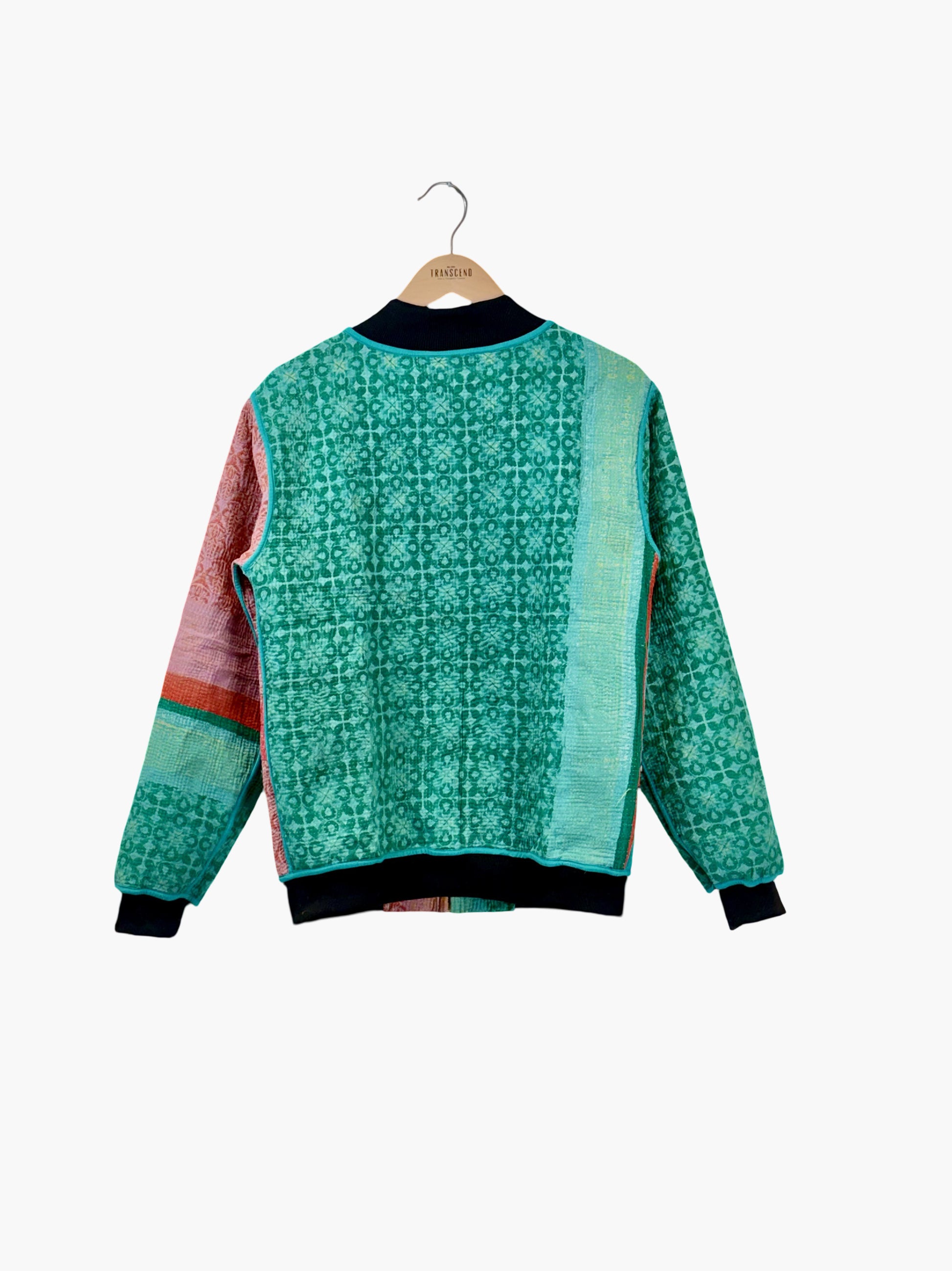 A one-of-a-kind MEN'S bomber jacket crafted from vintage kantha textiles. Lightweight yet full of character, this piece is a cozy, statement layer for everyday wear.