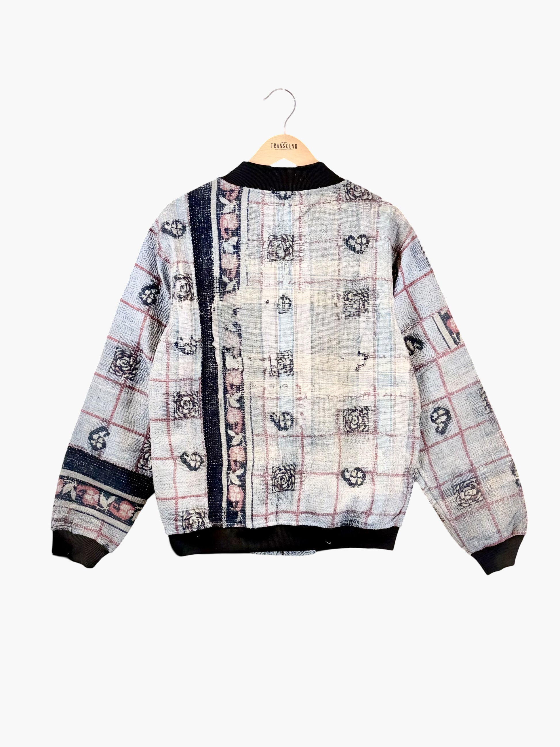 A one-of-a-kind MEN'S bomber jacket crafted from vintage kantha textiles. Lightweight yet full of character, this piece is a cozy, statement layer for everyday wear.
