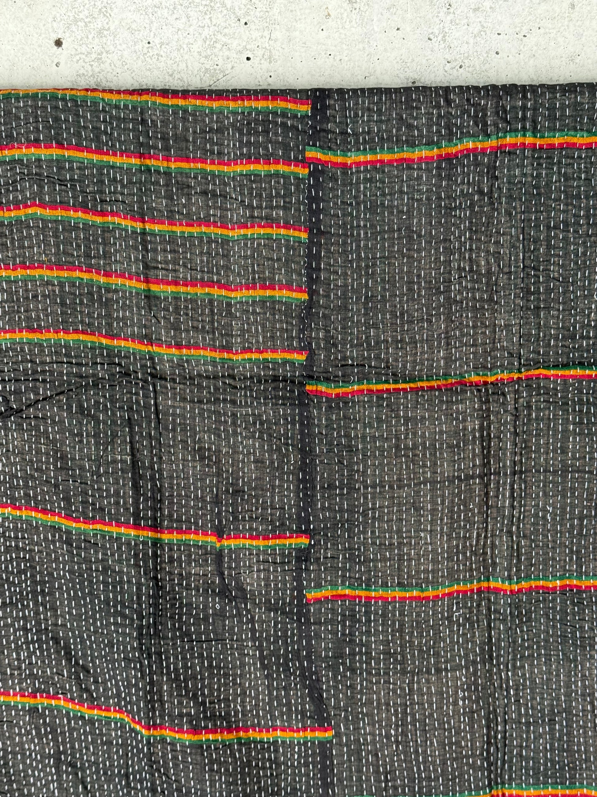 Kantha is a centuries-old craft from Eastern India and Bangladesh, where women repurpose old saris into quilts using rows of running stitches. Breathable, soft, and naturally durable thanks to hand embroidery. Fabrics are upcycled, reducing the demand for new textile production.