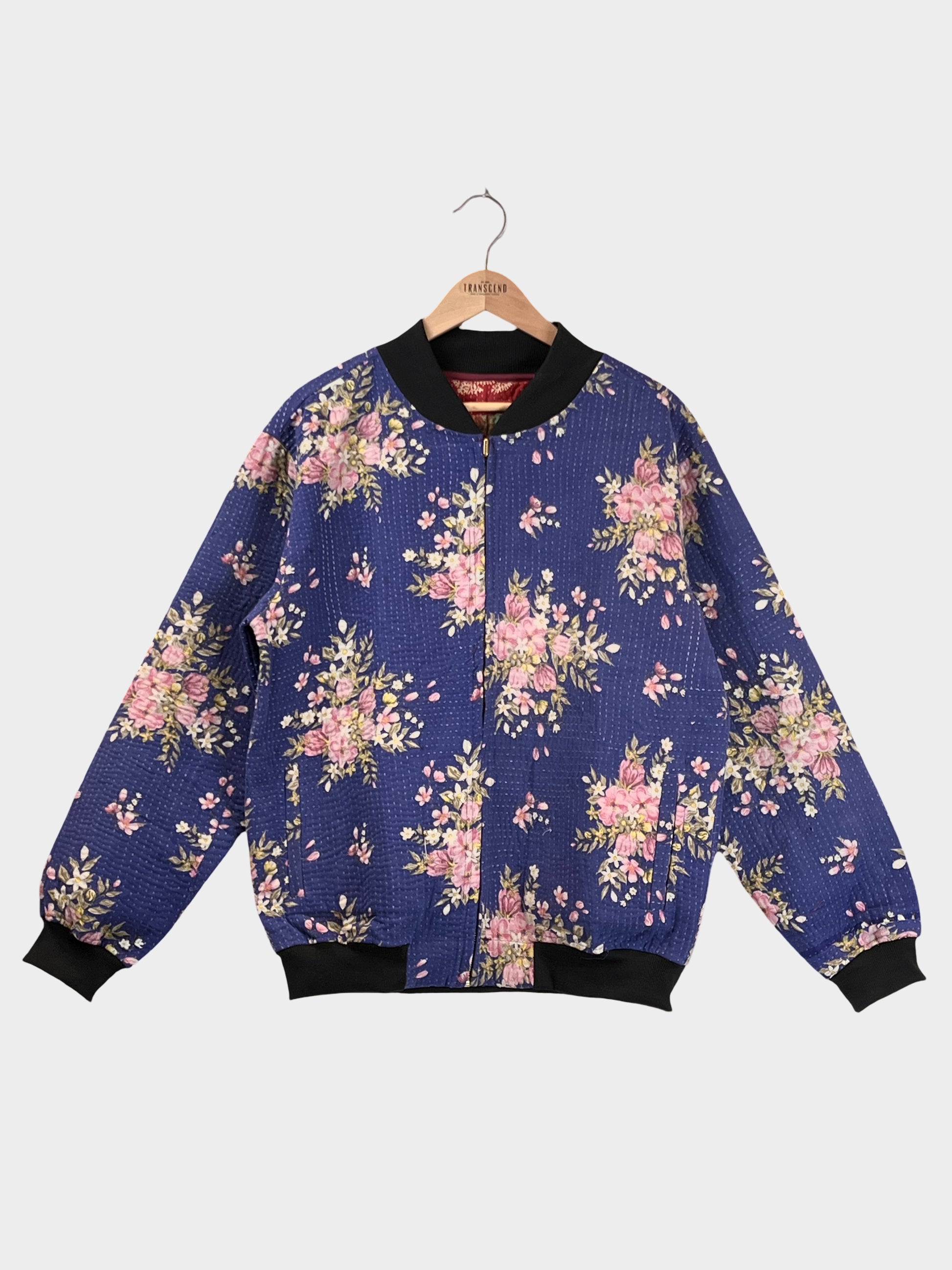 A one-of-a-kind MEN'S bomber jacket crafted from vintage kantha textiles. Lightweight yet full of character, this piece is a cozy, statement layer for everyday wear.