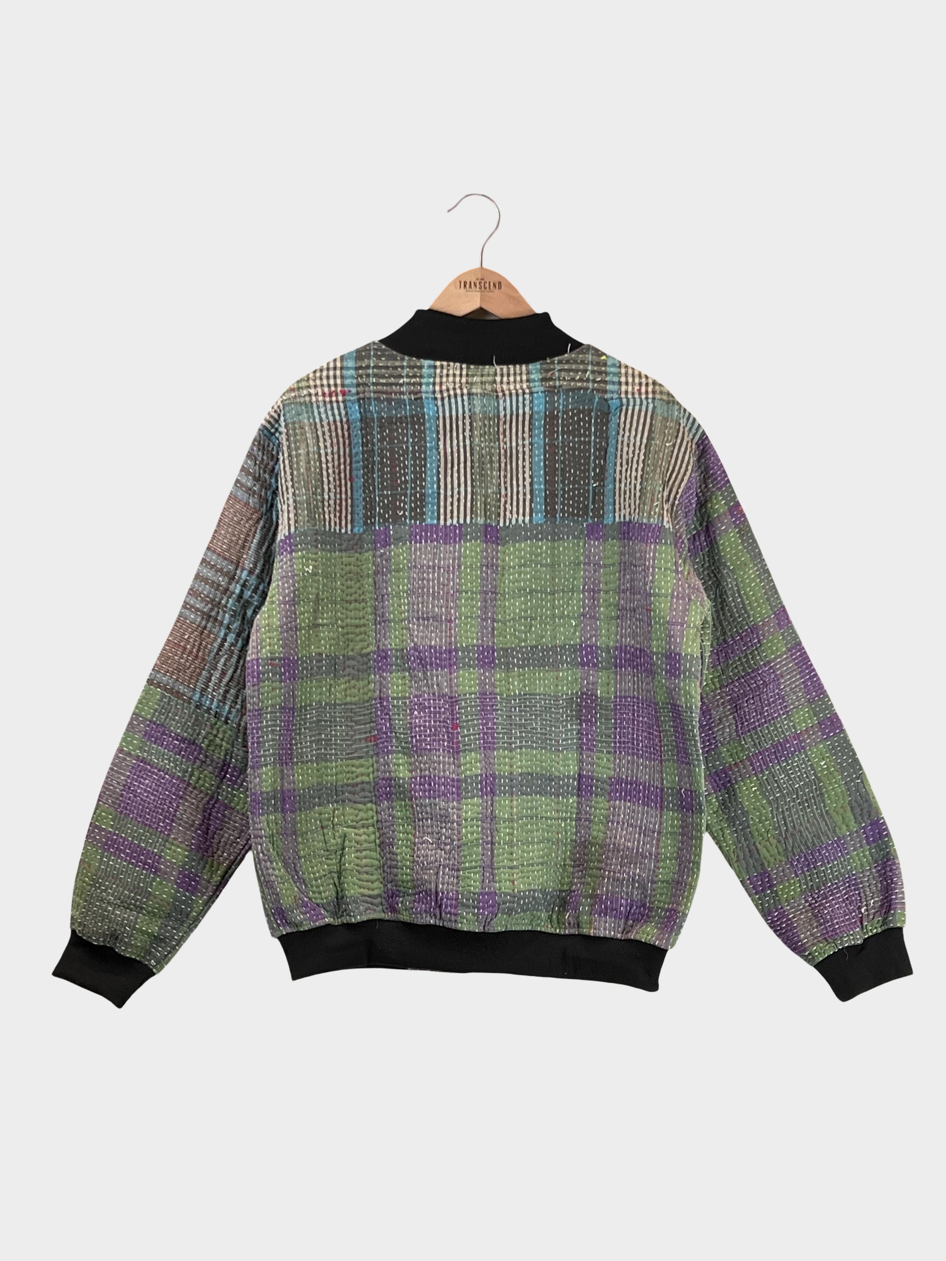 A one-of-a-kind MEN'S bomber jacket crafted from vintage kantha textiles. Lightweight yet full of character, this piece is a cozy, statement layer for everyday wear.